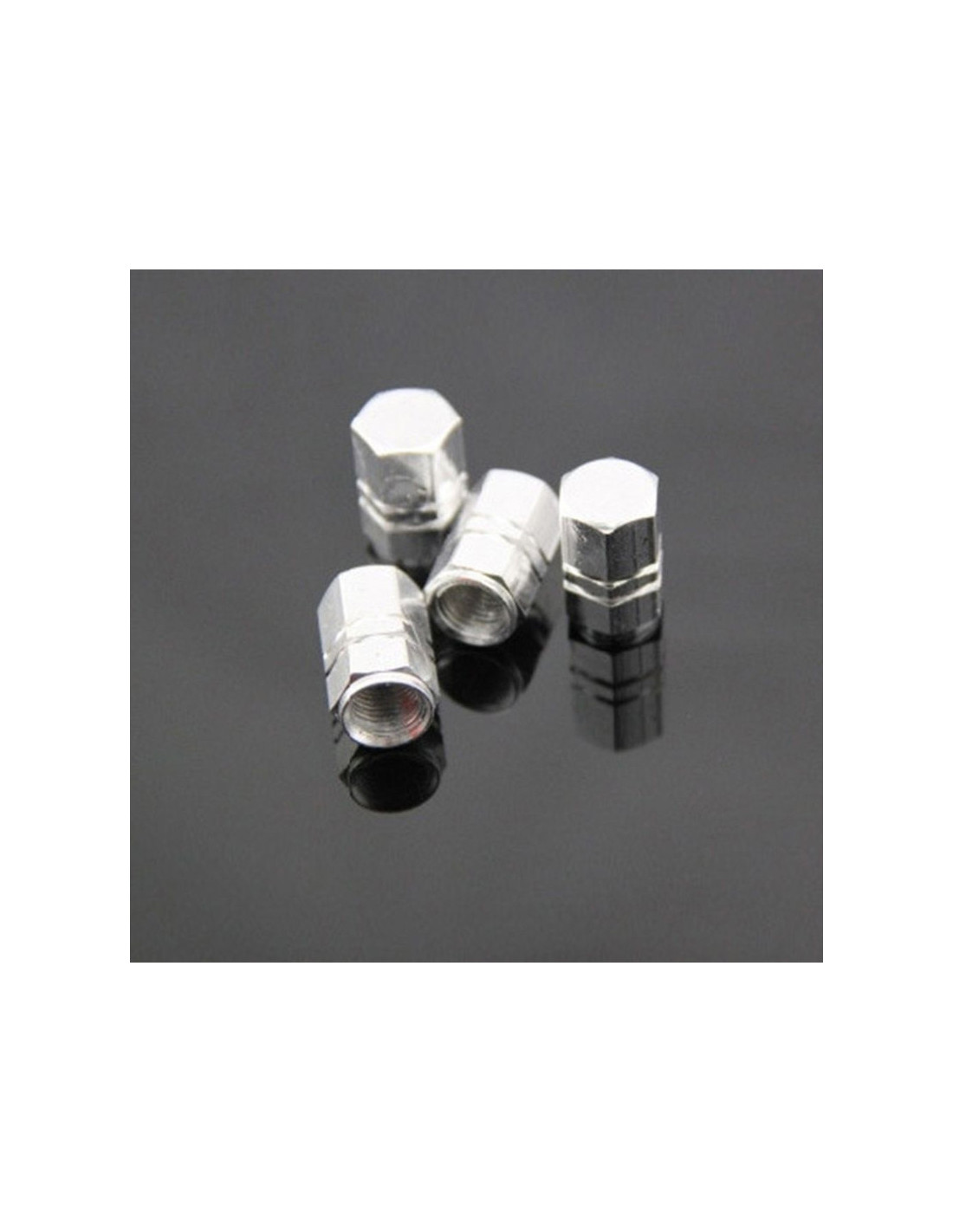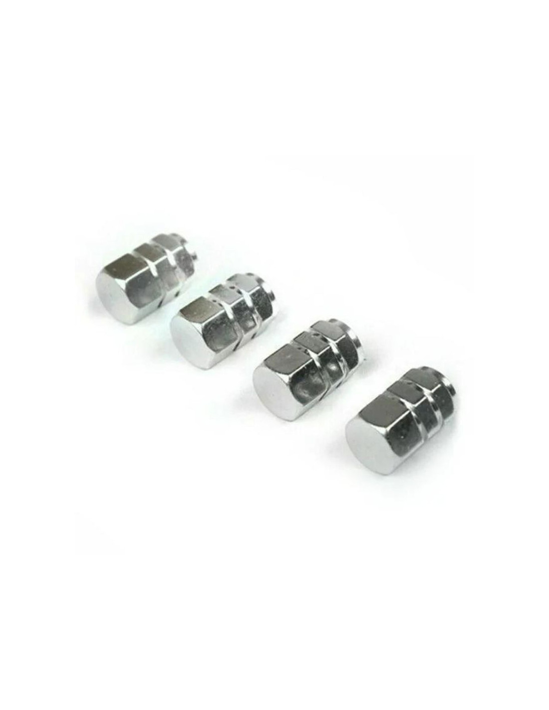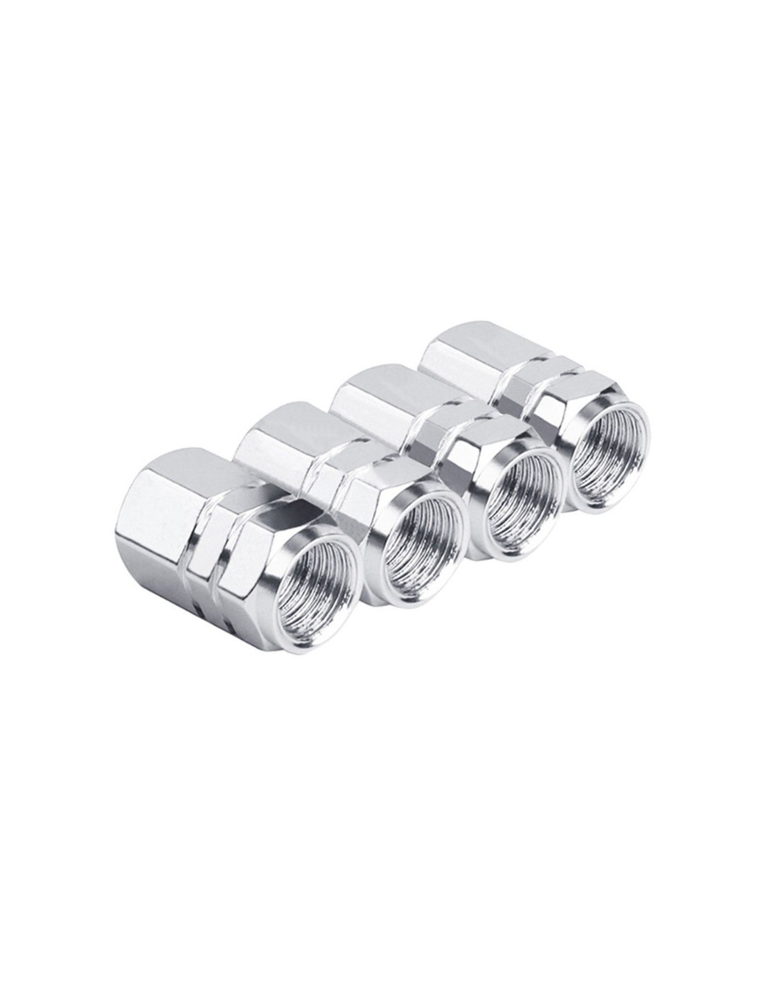 Set 4 capace hexagonale decorative pentru valva auto, Aluminiu, 1.8 cm, Argintiu