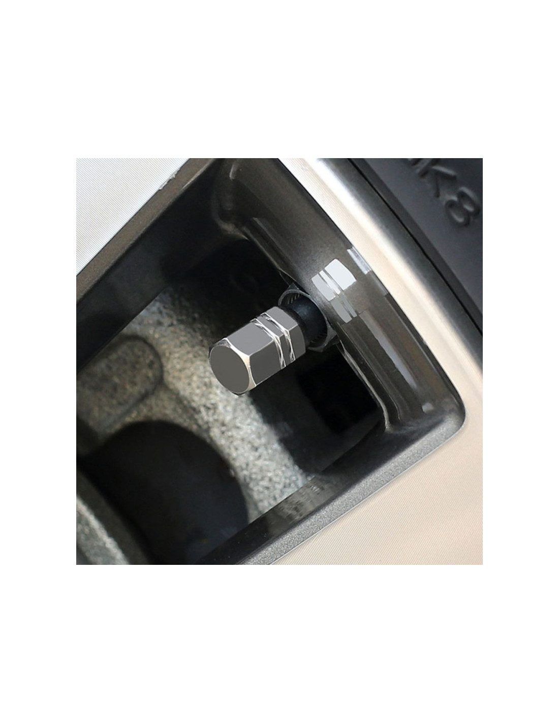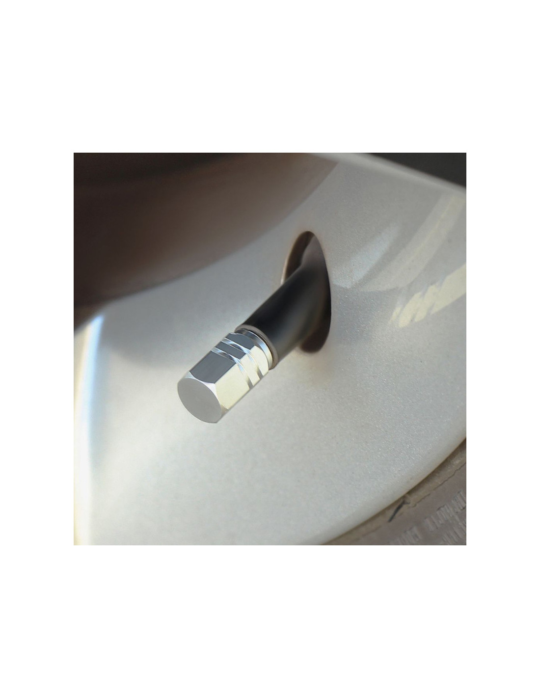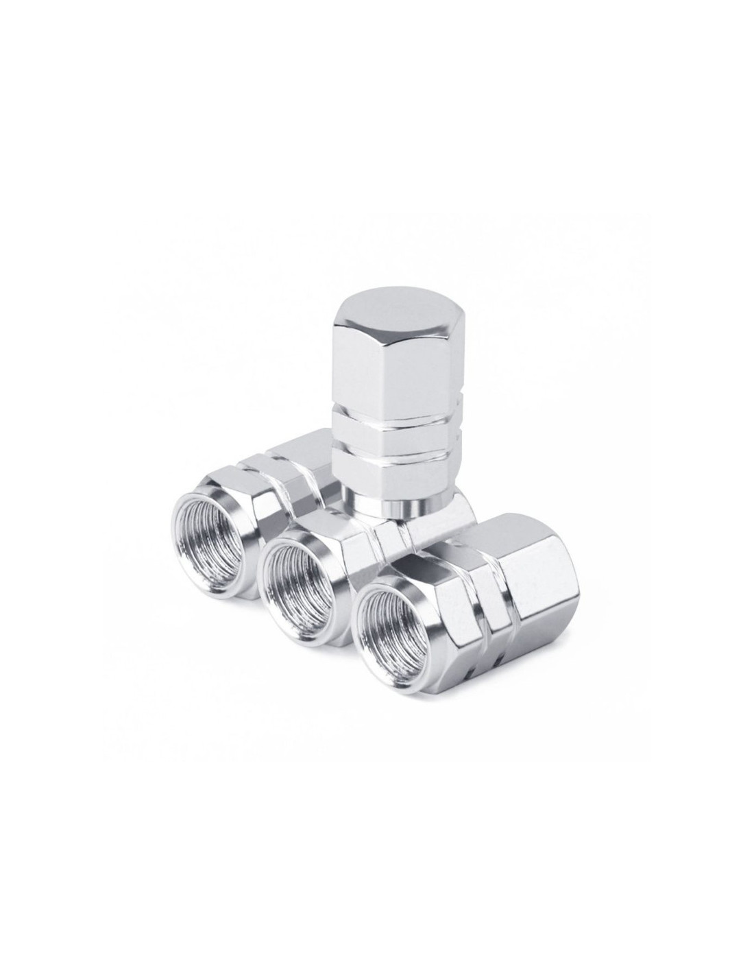 Set 4 capace hexagonale decorative pentru valva auto, Aluminiu, 1.8 cm, Argintiu