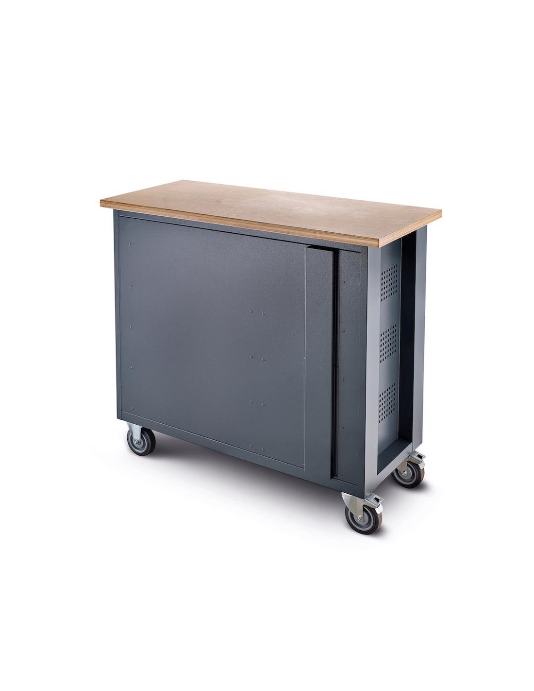 Pentru mobilitate, bancul este echipat cu roți Ø125 mm rezistente la ulei și acizi, cu protecție împotriva murdăriei și 2 frâne de parcare. Organizarea cablurilor este simplificată prin 2 treceri cauciucate și un canal de cablu detașabil pe partea din spate.