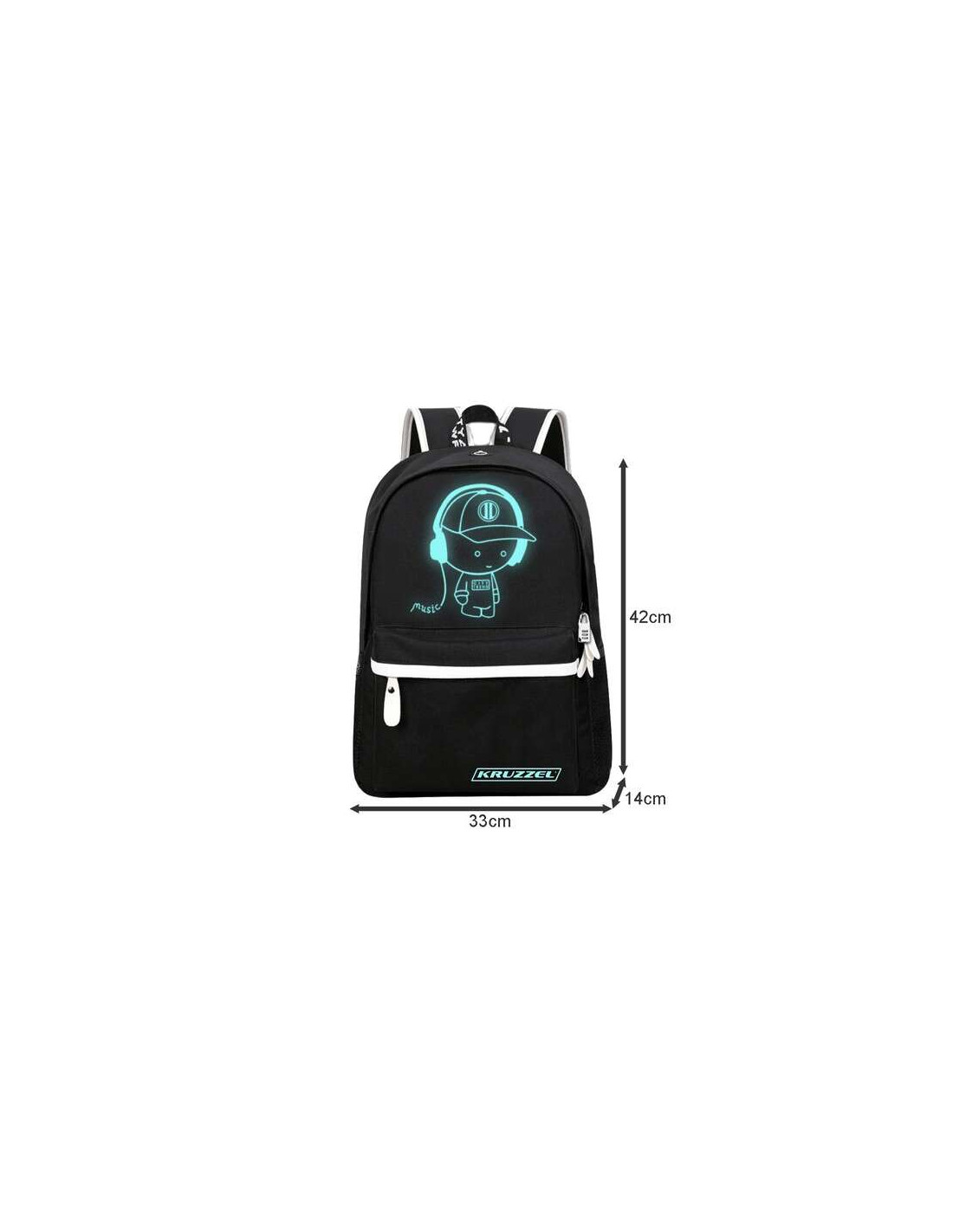 Ghiozdan/rucsac smart, fosforescent, impermeabil, cablu USB, mini jack, lacat, negru, 33x14x42 cm, Kruzzel