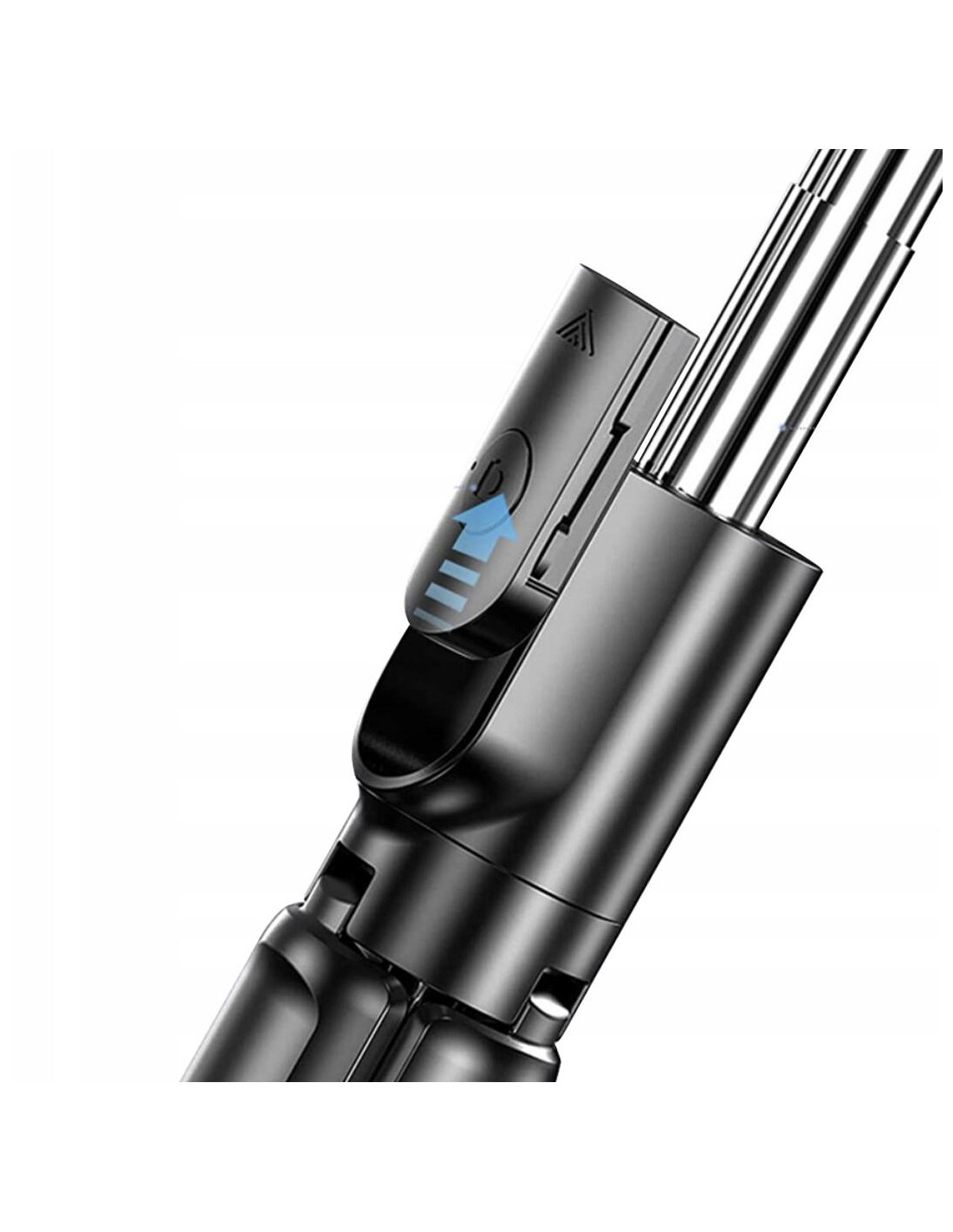 - Setul include un monopied cu posibilitate de desfasurare pe un trepied (ca trepied) si o telecomanda pentru fotografiere. Schimbarea modurilor este usoara si necesita doar cateva miscari. Glisati manerul pe telecomanda, desfaceti picioarele. Monopiedul se extinde pana la lungimea de 60 cm, iar suportul pentru telefon se roteste la 360 de grade.