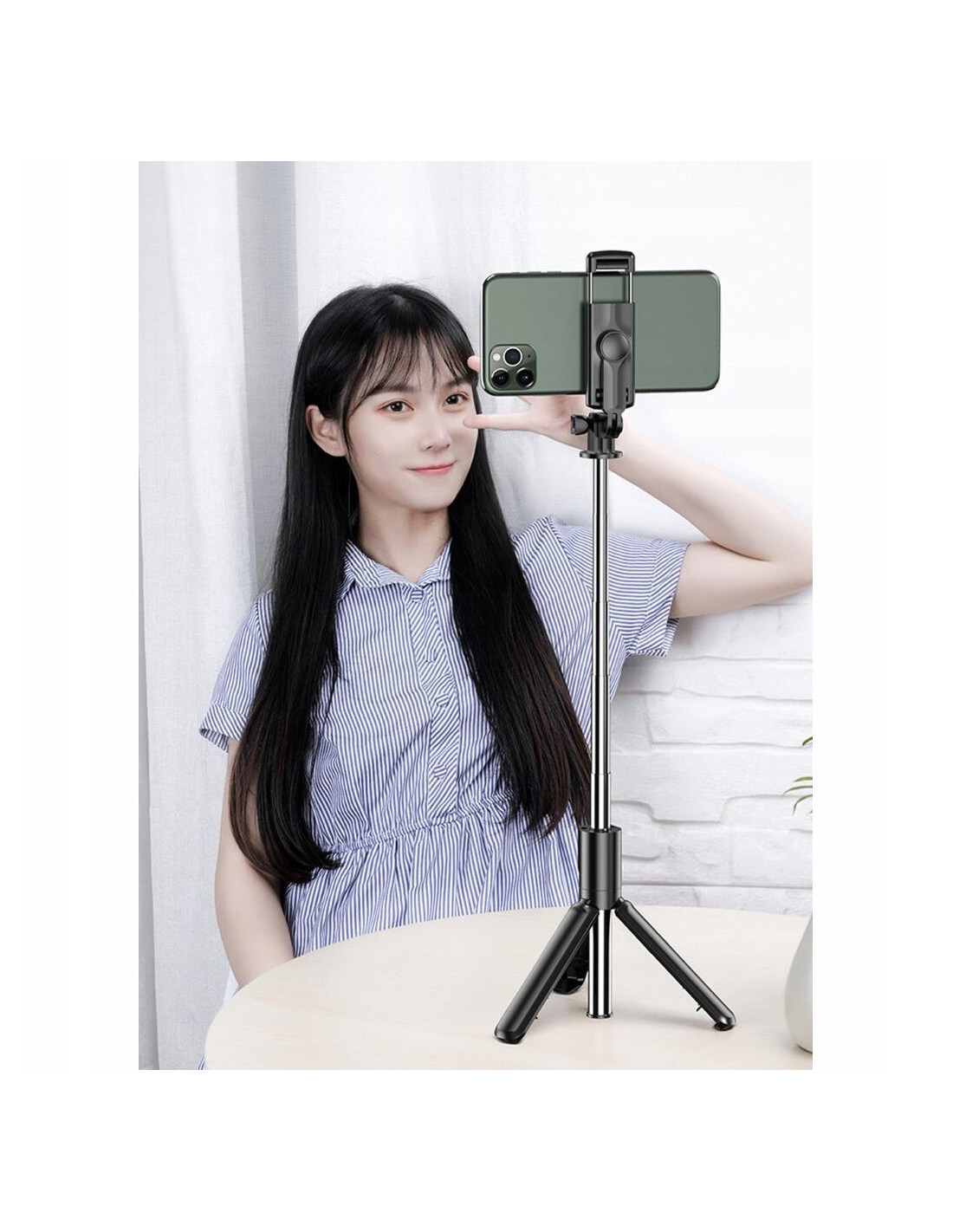- Produsul poate fi folosit nu numai pentru fotografii, ci si perfect pentru vlogging! Apasarea butonului de pe telecomanda functioneaza ca un declansator - va permite sa faceti o fotografie si sa incepeti inregistrarea video. Pentru a incheia inregistrarea, trebuie sa apasati tot acelasi buton. Functia trepied va fi de ajutor si in timpul apelurilor video. Designul usor si compact iti permite sa-l iei in calatorie, sa-l porti intr-un rucsac sau sa-l depozitezi in masina, astfel incat sa fie mereu la indemana.