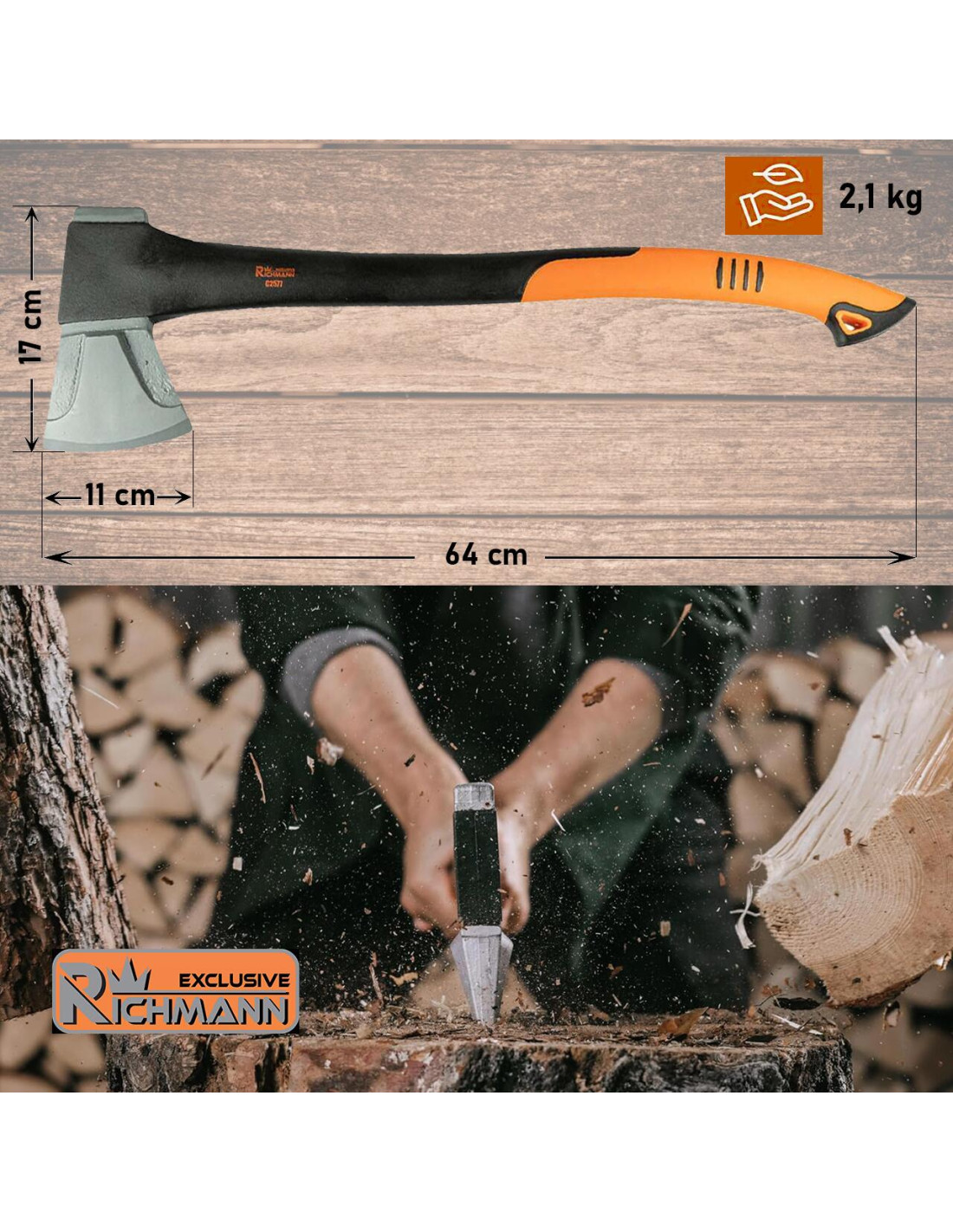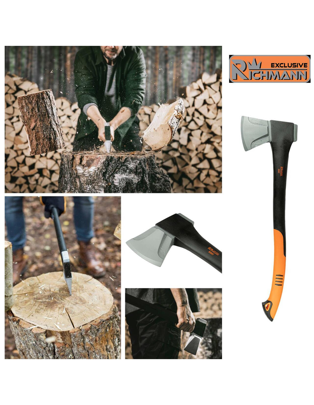 Topor pentru despicat, coada fibra, 1.6 kg, profesional, Richmann Exclusive