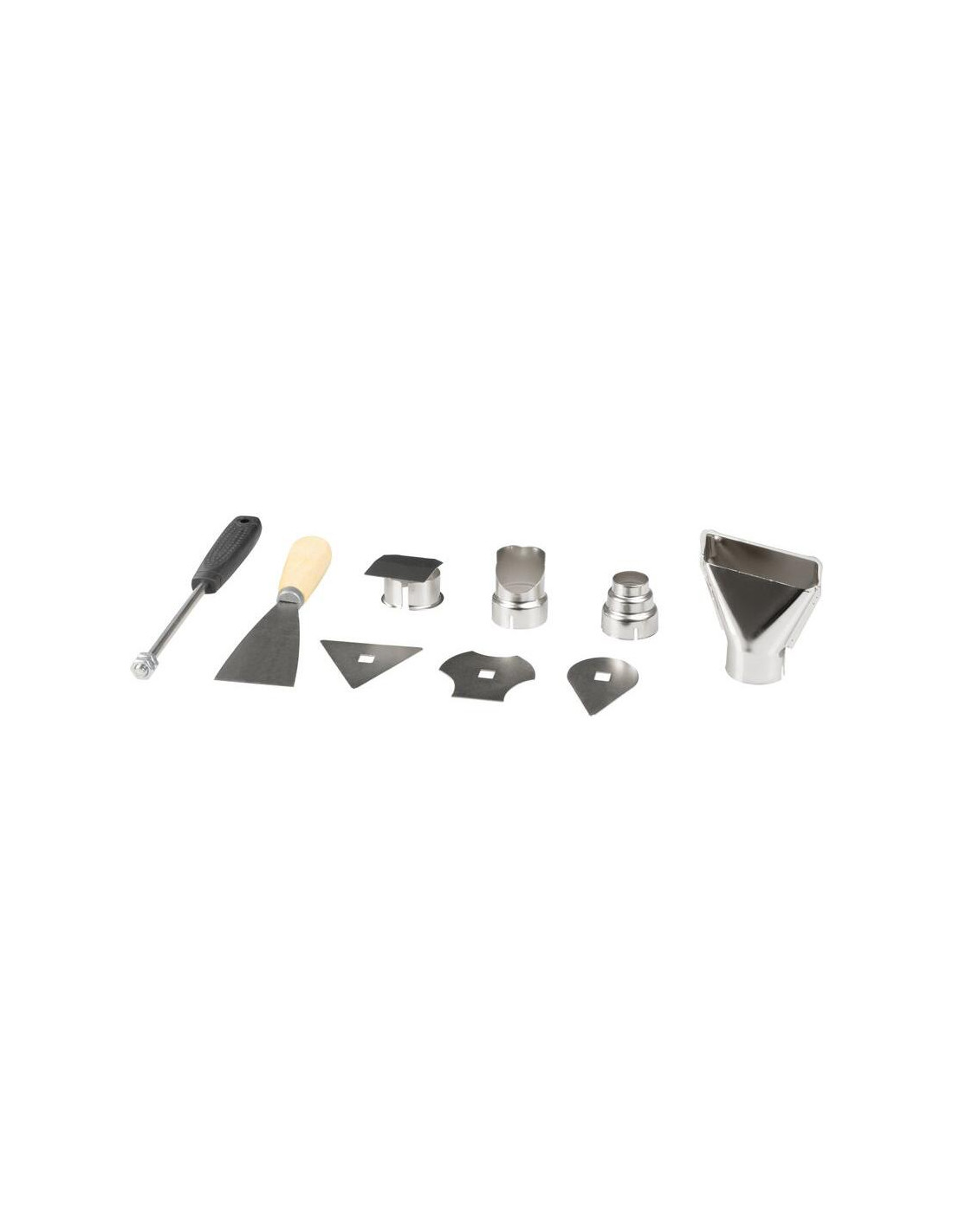 - Pachetul include mai multe elemente (duza de reducere, duza plata, duza reflectorizanta, duza de protectie a sticlei, razuitor cu 3 accesorii, un spaclu si o surubelnita speciala) si o geanta practica pentru transportarea usoara si depozitarea in siguranta a pistolului si a acestora.