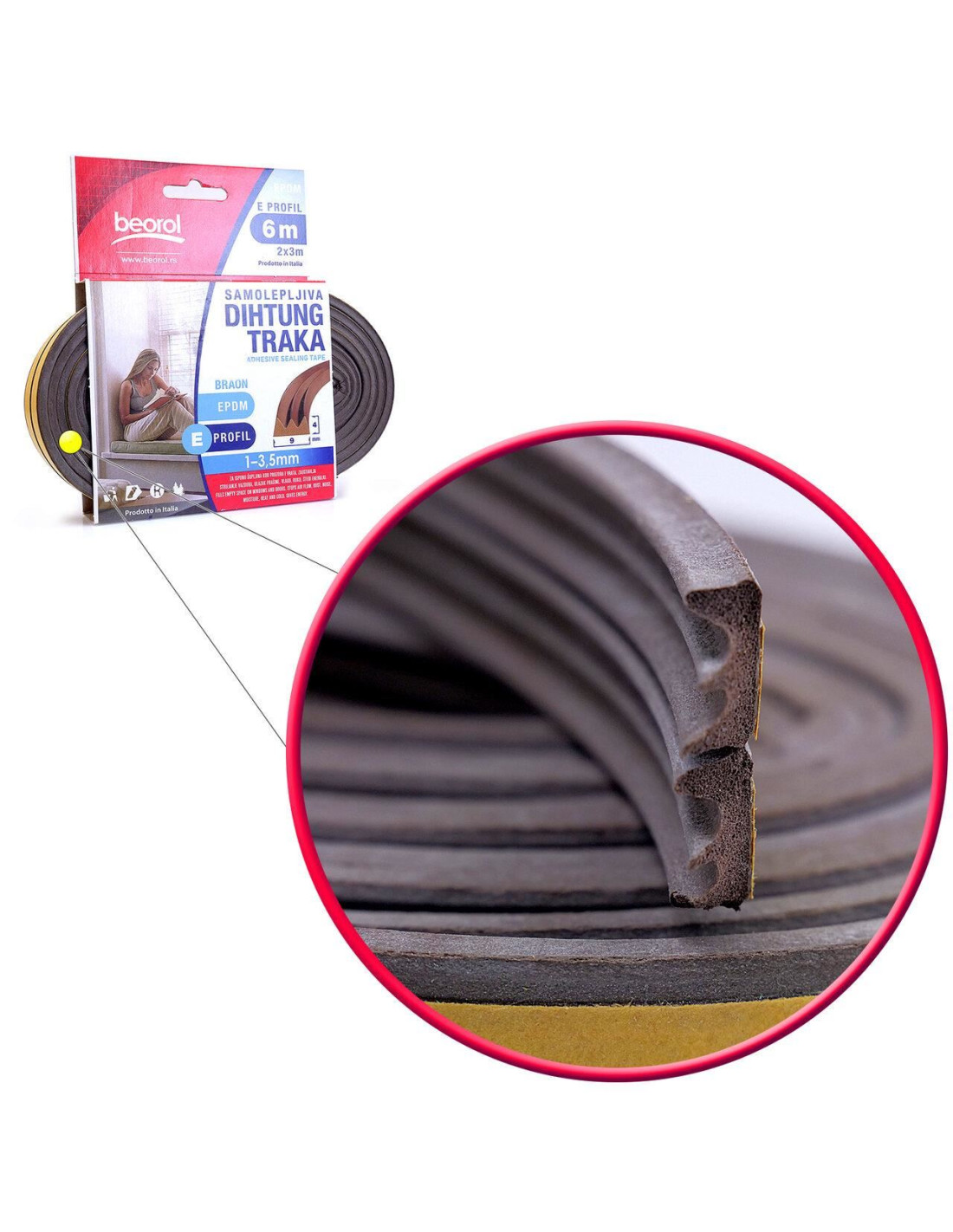 Banda etansare usi si ferestre, maro, profil E 2x3 m, Beorol