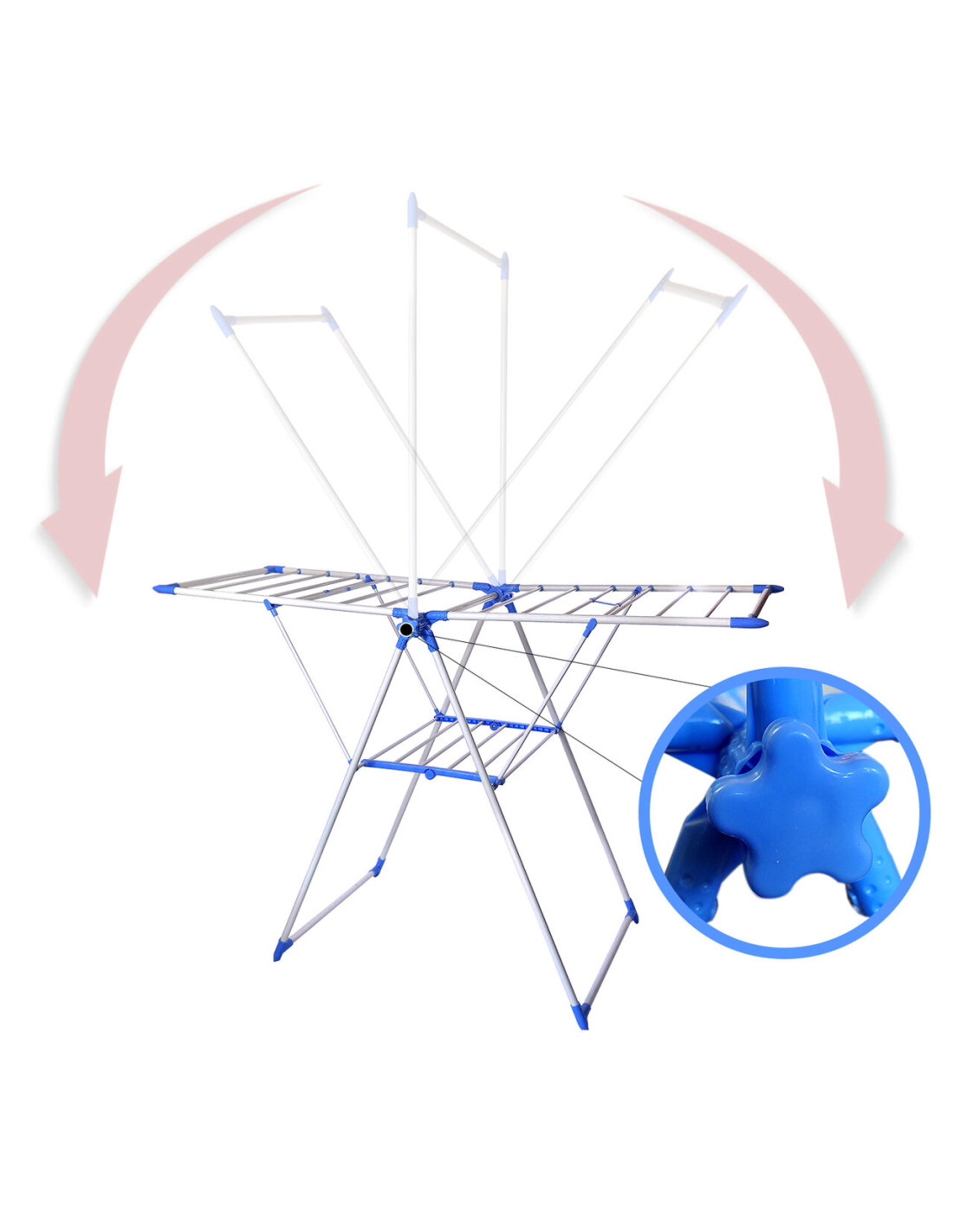 - Se pliaza RAPID si USOR atunci cand nu este utilizat. Dupa terminare, suportul de uscare se indoaie pentru depozitarea compacta intr-un dulap sau langa masina de spalat.