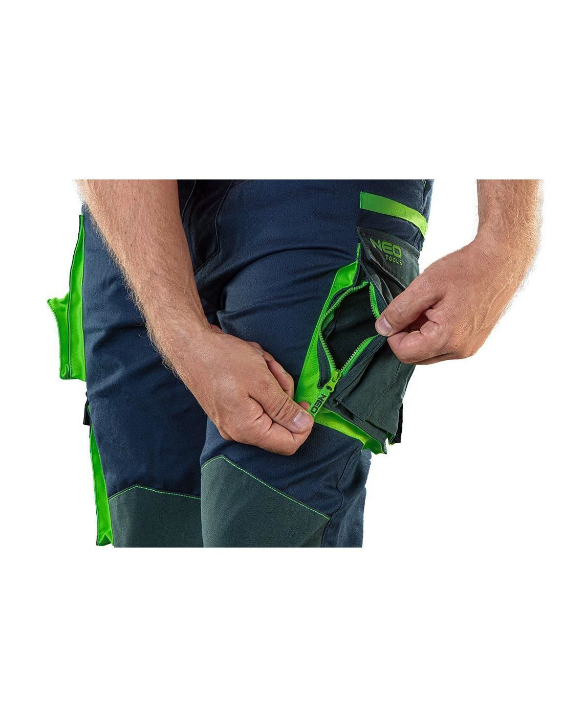 Pantalonii de lucru, model PREMIUM, de la NEO, sunt fabricati din 60% bumbac, 35% poliester si 5% elastan.