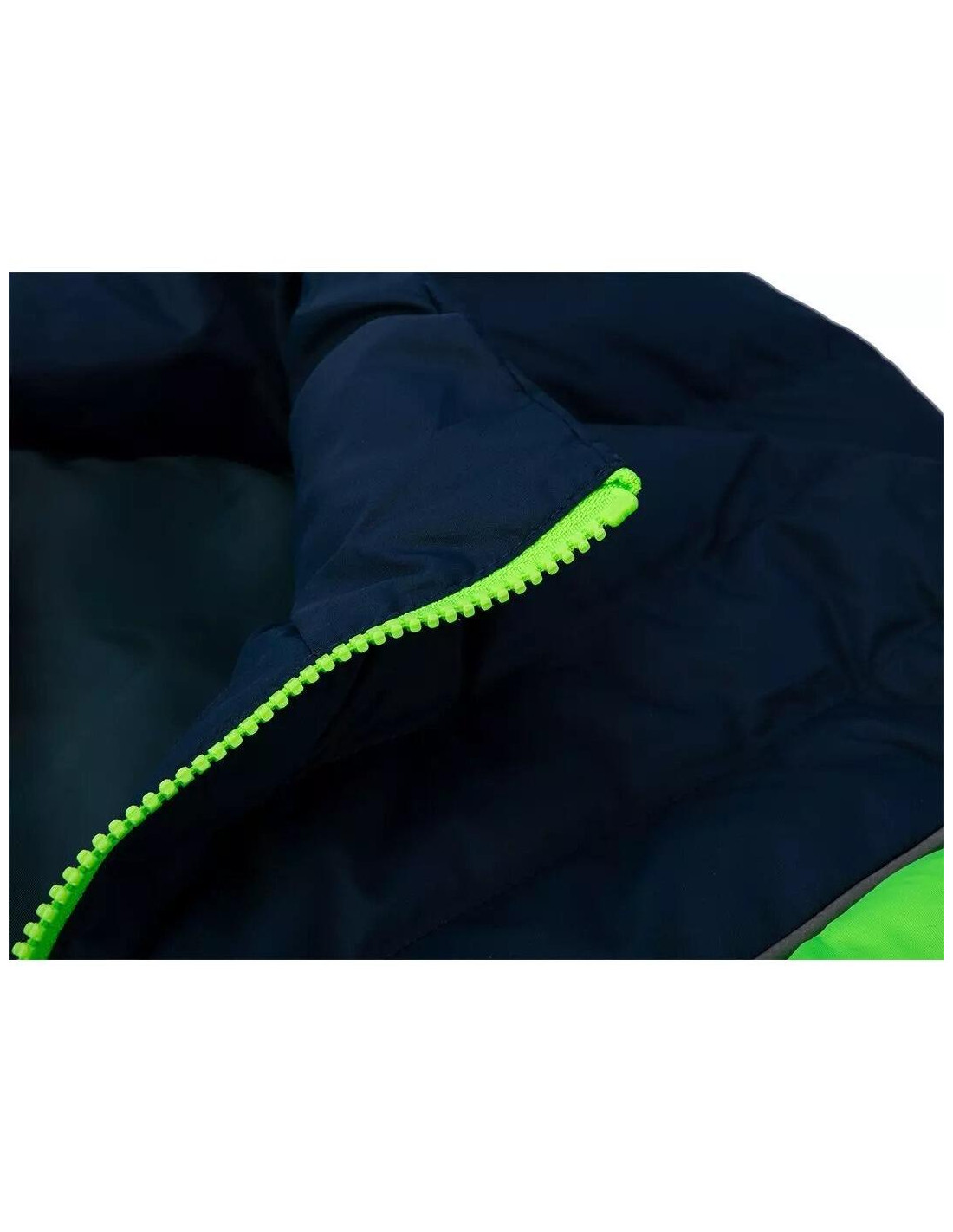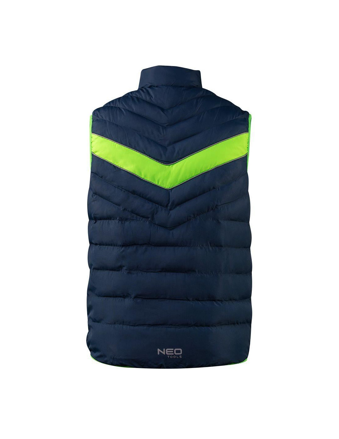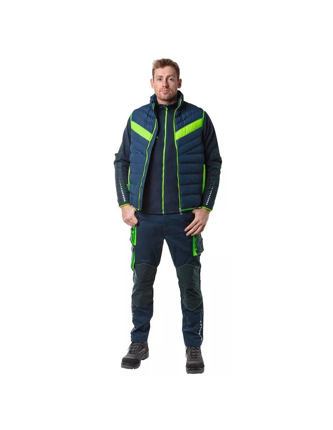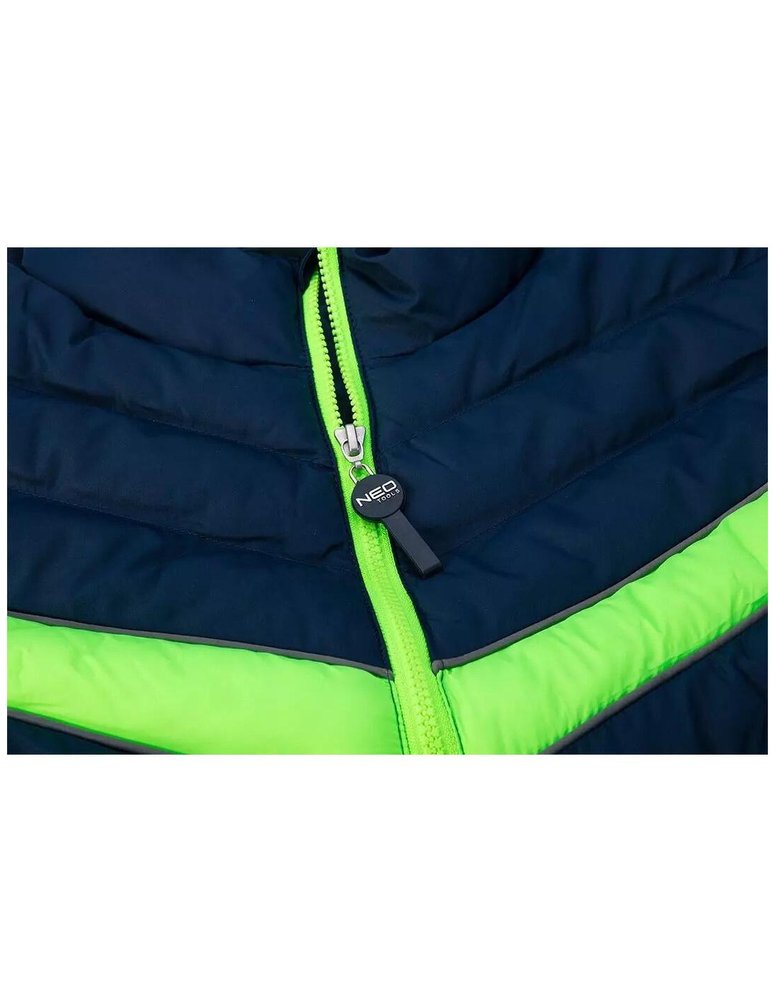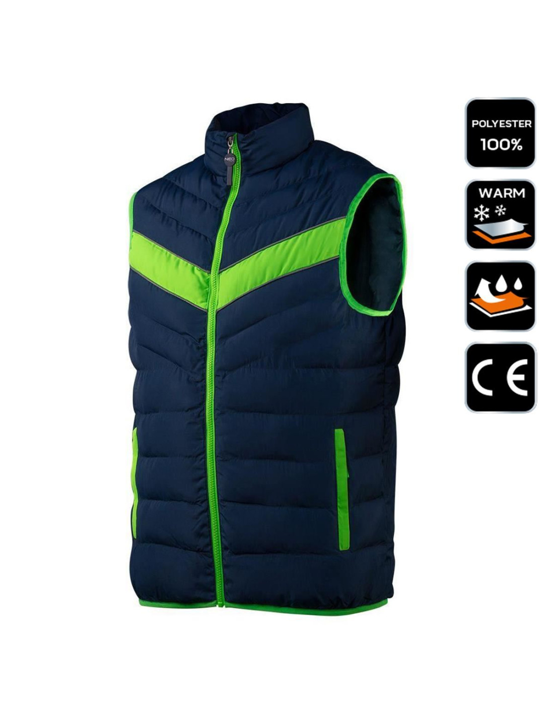 Vesta de lucru matlasata PREMIUM de la NEO are o combinatie moderna de albastru marin cu accente verzi.