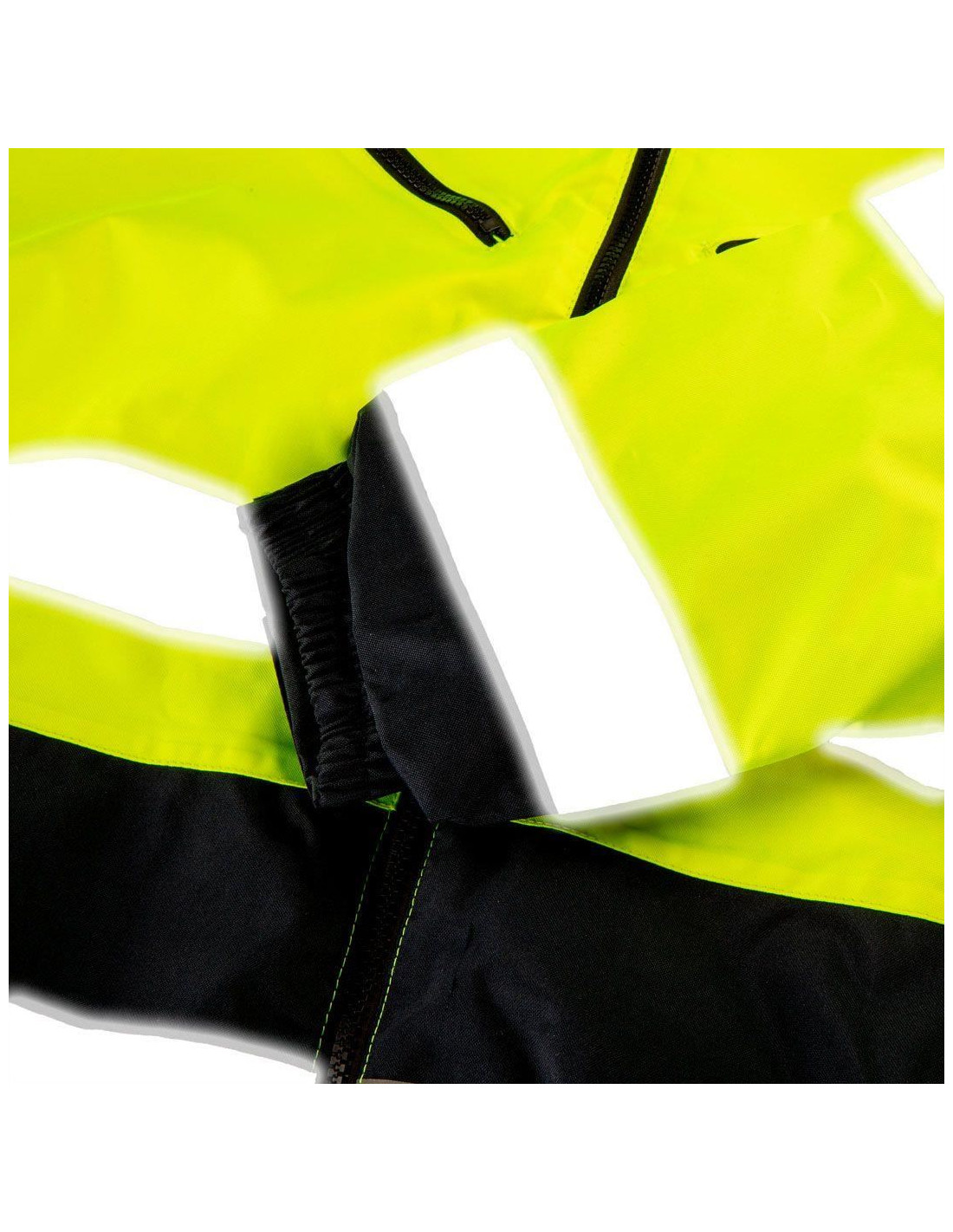 Geaca este fabricata din material fluorescent durabil, impermeabil si elemente reflectorizante care asigura vizibilitatea, in conformitate cu cerintele PN-EN ISO 20471: 2013. Are izolatie cu poliester usor care va oferi confort in zilele reci. Cusaturile cu banda si o tesatura cu o rezistenta la apa de 1000 mm va vor permite sa lucrati si pe ploaie.