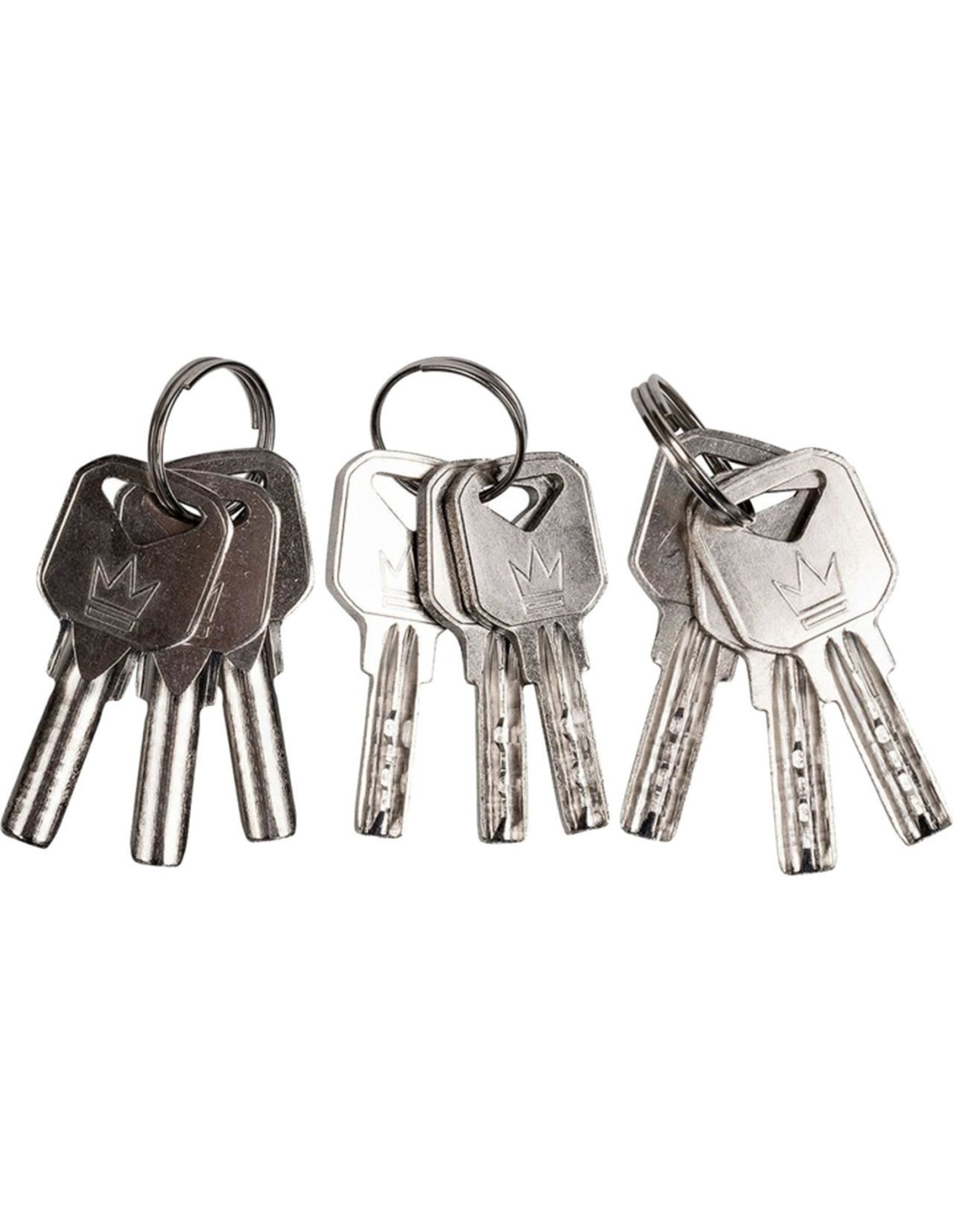 - Setul include 3 seturi de chei, cate 3 piese fiecare cu un inel.