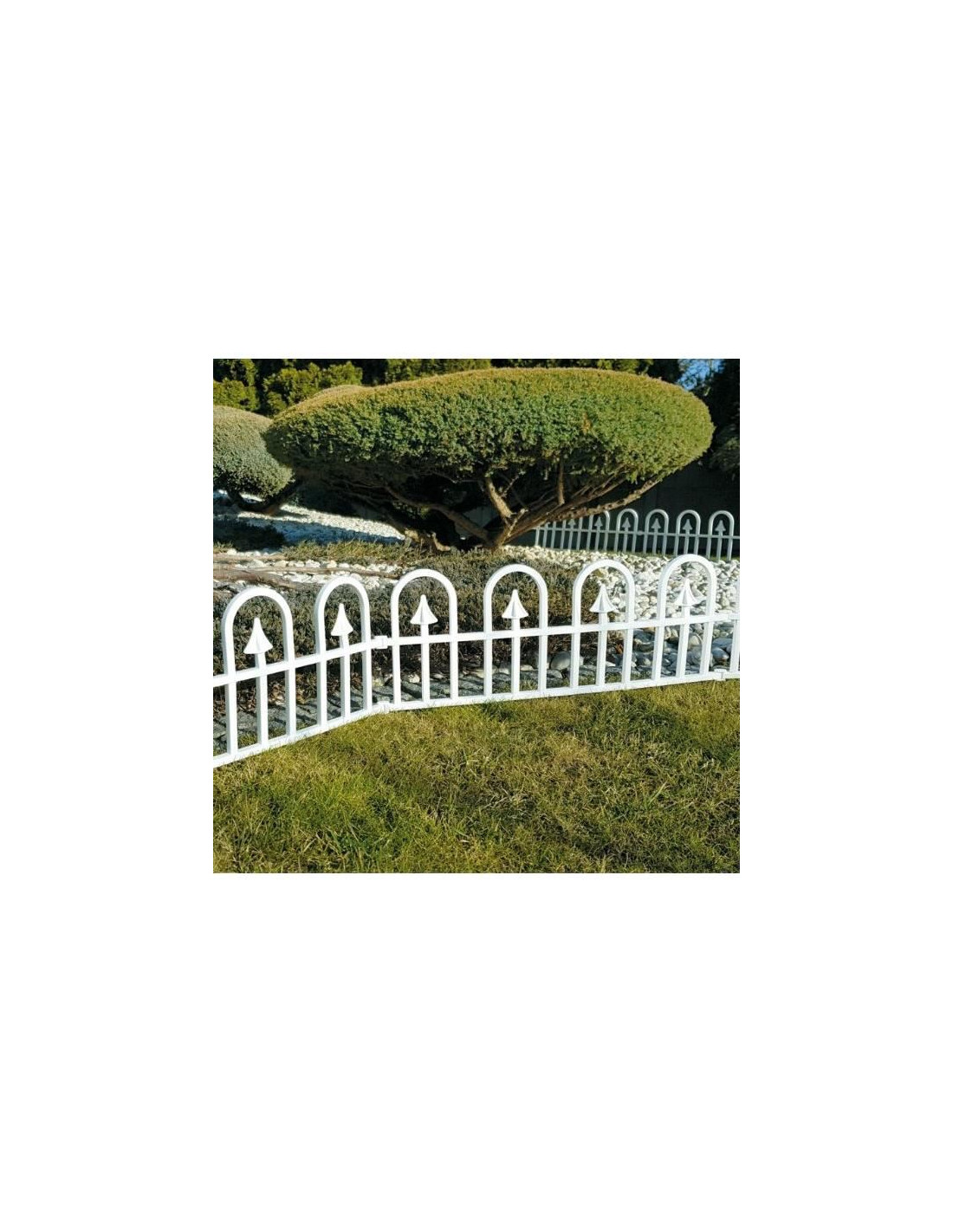 Setul include: 4 garduri din plastic de 60 cm lungime si 31 cm inaltime, ceea ce permite instalarea unui gard cu o lungime totala de 2.4 m.