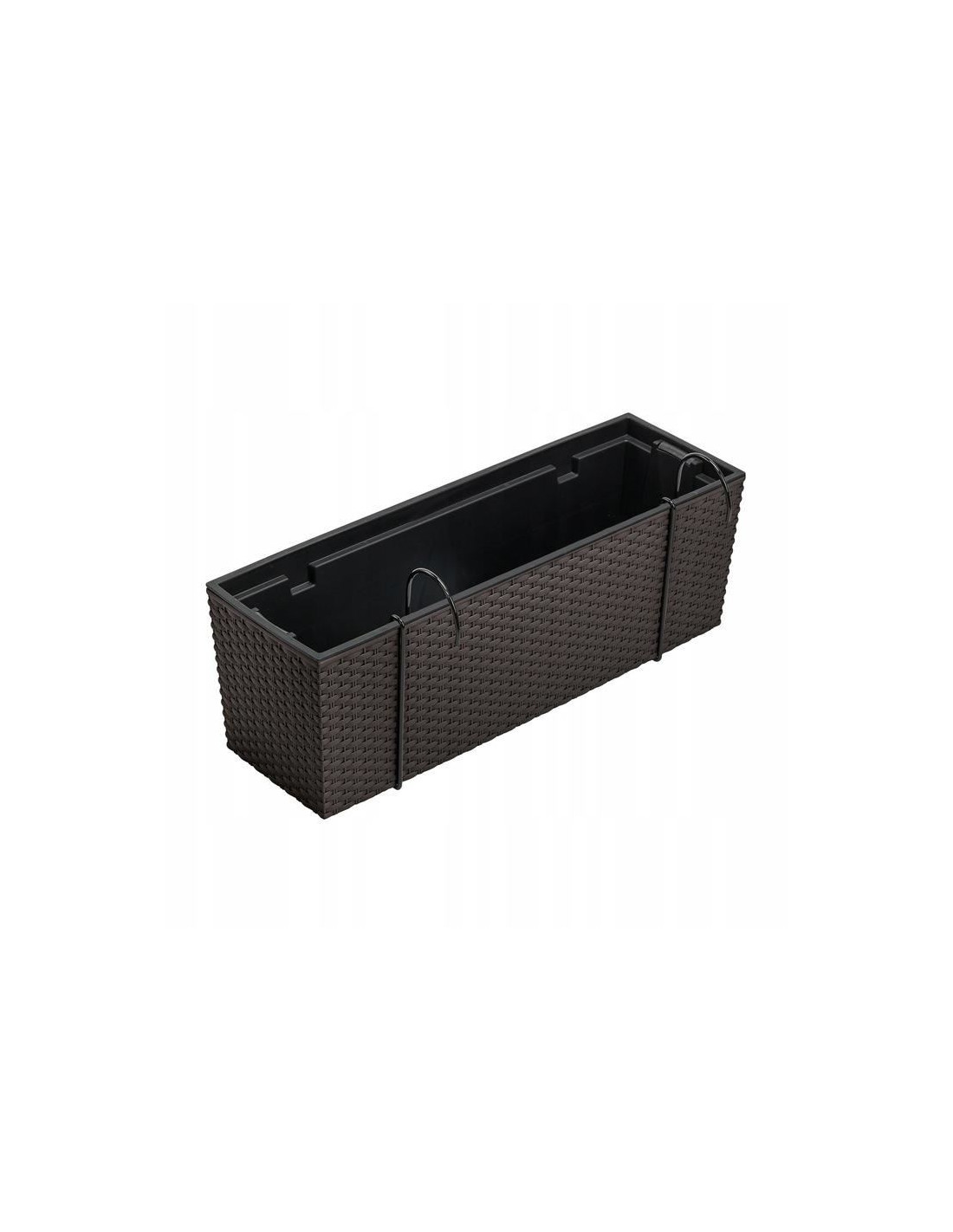 Jardiniera decorativa, suport metalic, imitatie ratan, maro, 58x18x19.5 cm, Rato Case W
