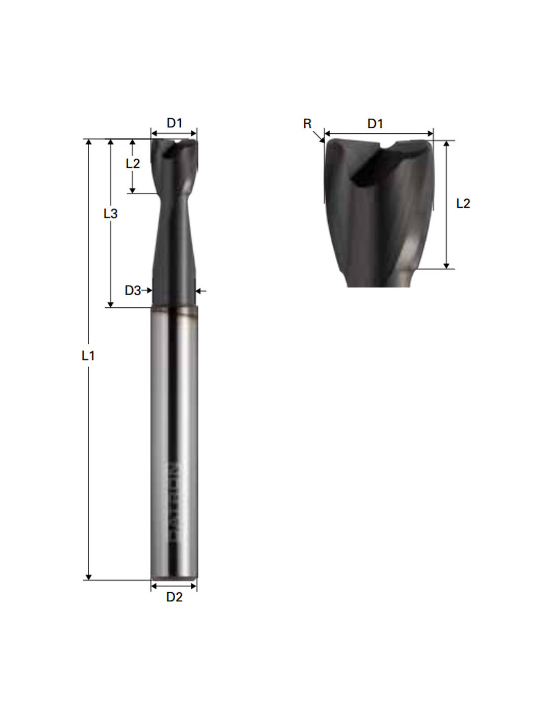 Freza de adancime cu raza, Triple Cut, 2 caneluri, Datron 00781066, R 1.0, 6.0x7.0x6.0mm
