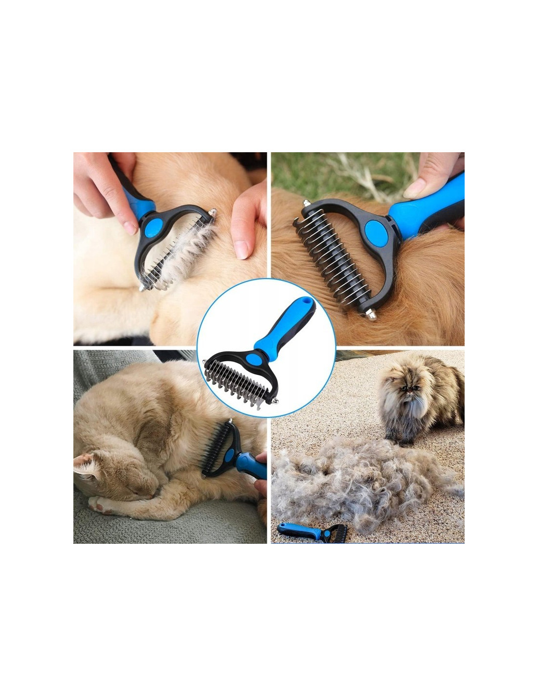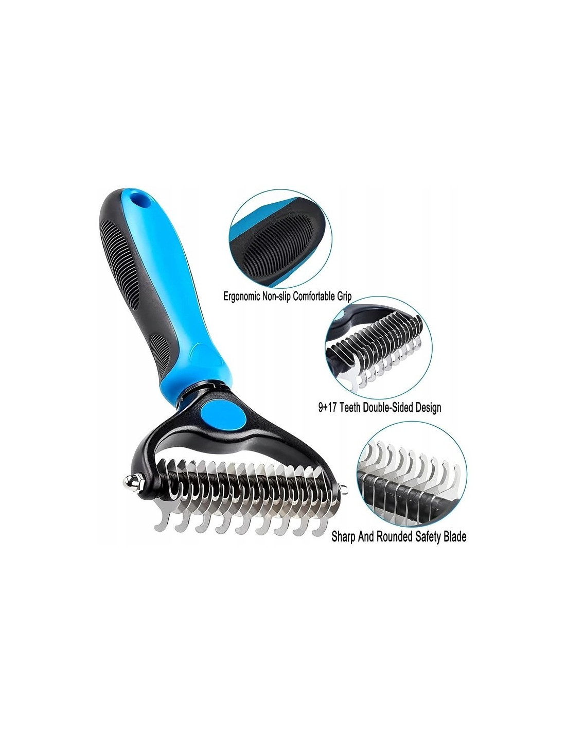 Dotat cu 17 lame din oțel inoxidabil, pieptenele îndepărtează cu ușurință firele moarte și previne încâlcirea blănii, fără a răni pielea animalului. Mânerul ergonomic antiderapant asigură confort și control în timpul utilizării.