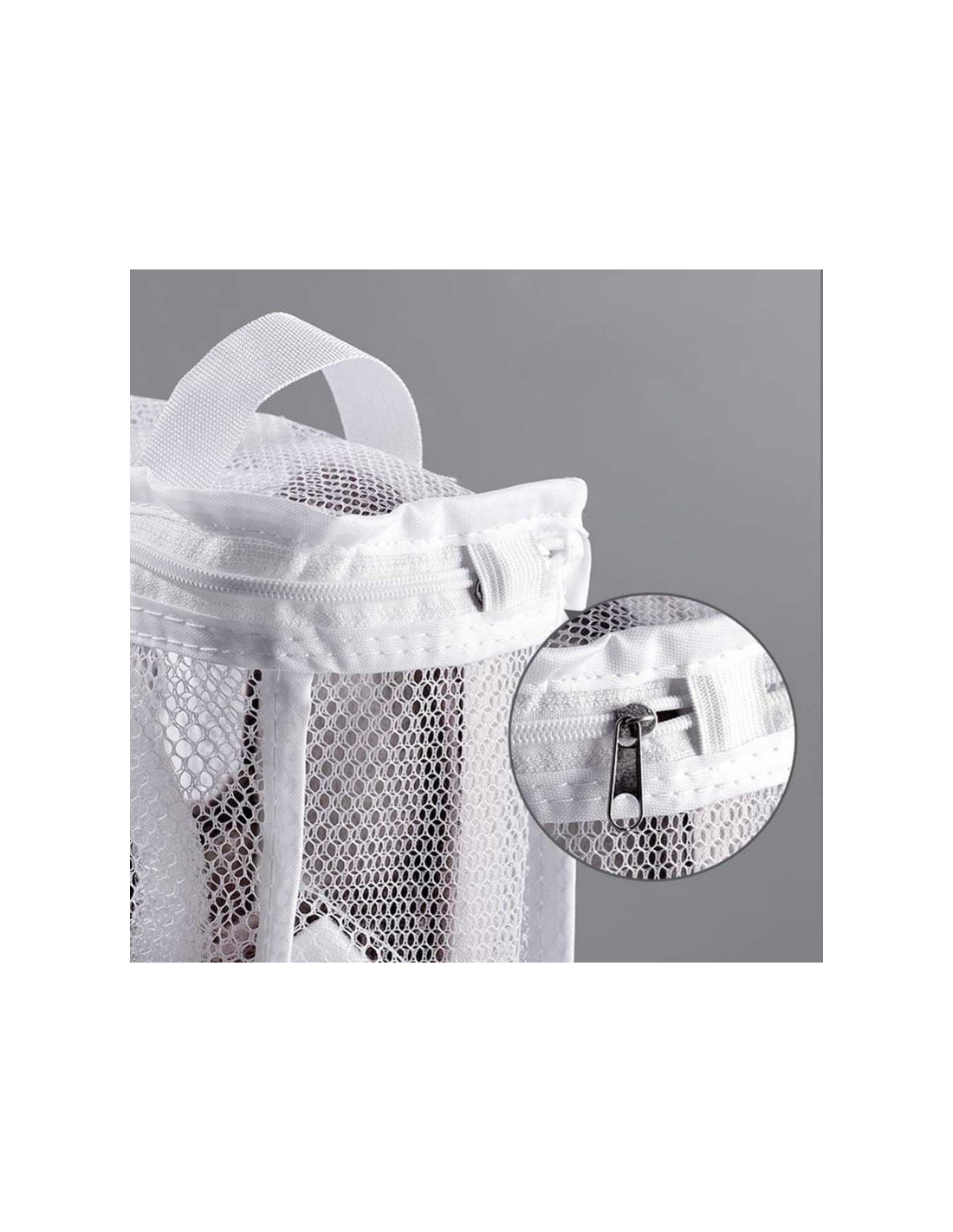 Fiecare saculet este prevazut cu fermoar mic si rotunjit, ce poate fi ascuns in compartimentul special, evitand deschiderea in timpul spalarii sau zgarierea altor articole. Buclele practice permit agatarea rapida pentru uscare pe balcon sau suport.