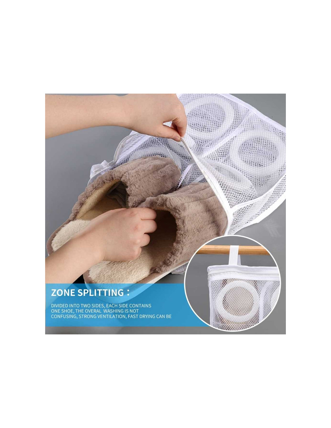 Setul de 4 saculeti pentru spalare si uscare este alegerea perfecta pentru protejarea pantofilor si a hainelor delicate in masina de spalat sau uscator. Fabricati din poliester rezistent, acestia ofera siguranta si eficienta la fiecare ciclu de spalare.